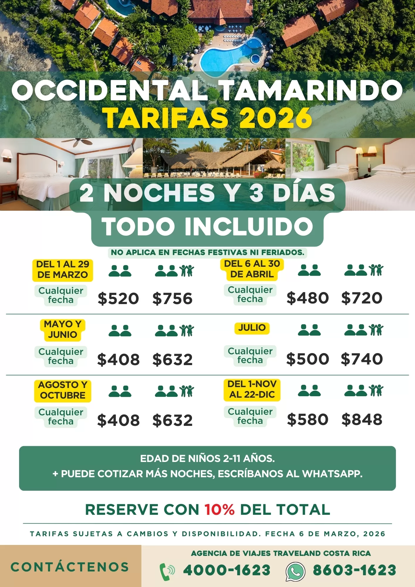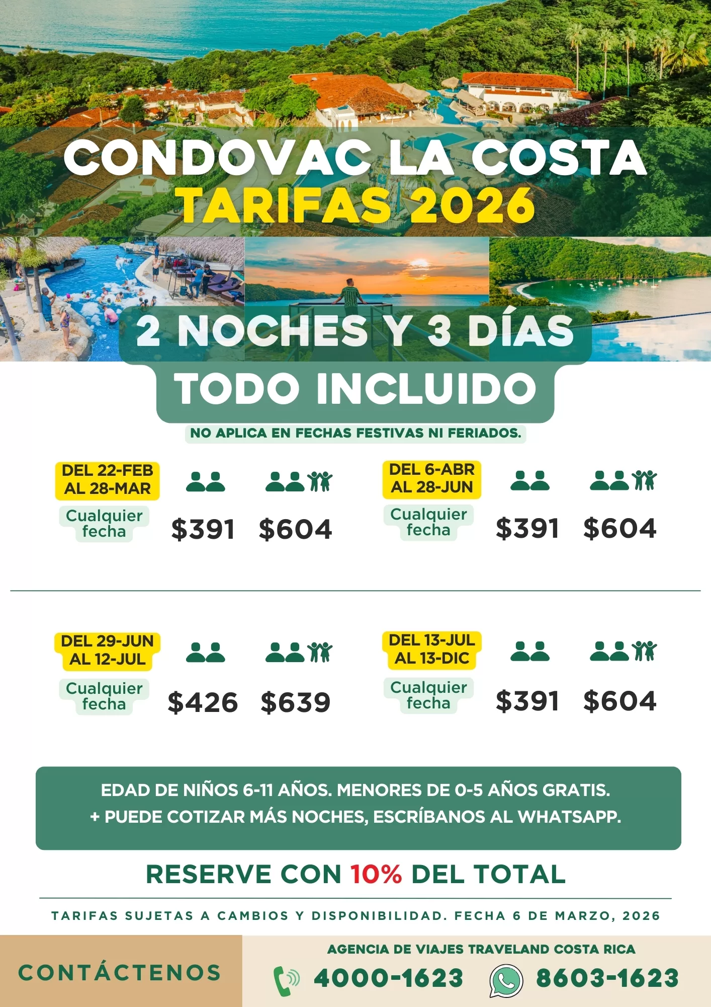 En Viajes Traveland, agencia costarricense con declaratoria turística y sello Safe Travels, trabajamos con los principales resorts del país para que vivas una experiencia completa: alojamiento, alimentos, bebidas y actividades incluidas.