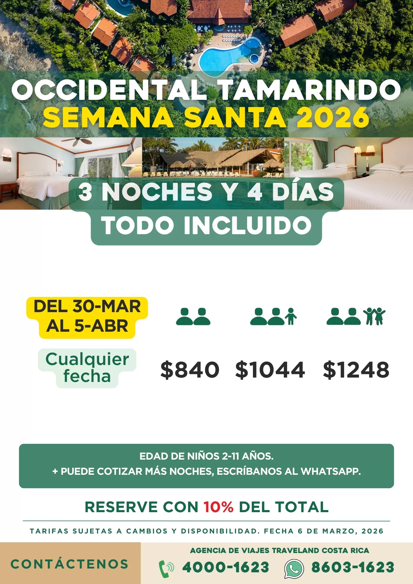 Si estás buscando precios Occidental Tamarindo o tarifas Occidental Tamarindo, aquí encontrás el detalle actualizado de paquetes todo incluido para el 2026, incluyendo fechas regulares, fechas festivas y Semana Santa.