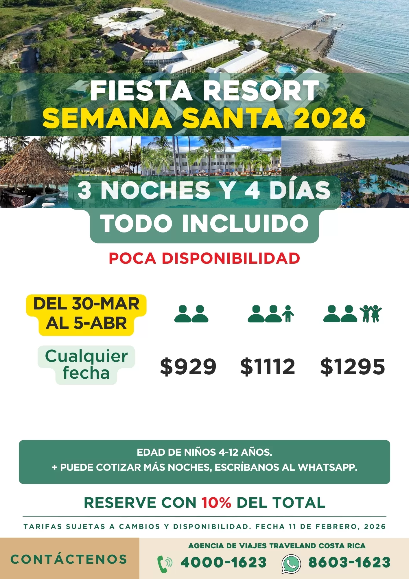 Semana Santa es desde el sábado 28 de marzo al domingo 5 de abril. Los días feriados son el jueves 2 y el viernes 3 de abril, 2026. Para esta fecha los hoteles suelen solicitar un mínimo de noches para reservar: